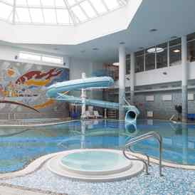 Гостям доступны занятия в тренажёрном зале с современными силовыми и кардиотренажёрами, помощь квалифицированных тренеров и помощь в составлении индивидуального плана питания. В аквазоне работает бассейн длиной 25 метров с температурой воды 29°, джакузи, водная горка, гейзер, подводные пушки и водопады. Детям от 3 лет предлагается отдельный мелководный бассейн. Дополнительно можно посетить финские сауны (80–100°), кедровую бочку с травяными сборами и завершить сеанс чаепитием.