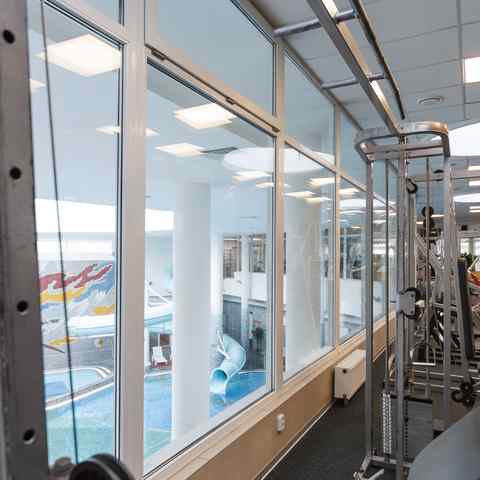 Аквапарк, Бассейн, Гидромассаж, Джакузи, Душевые, Кафе, Подводный массаж, Раздевалки, Сауна, Тренажерный зал, Услуги инструктора, Фен, Баня